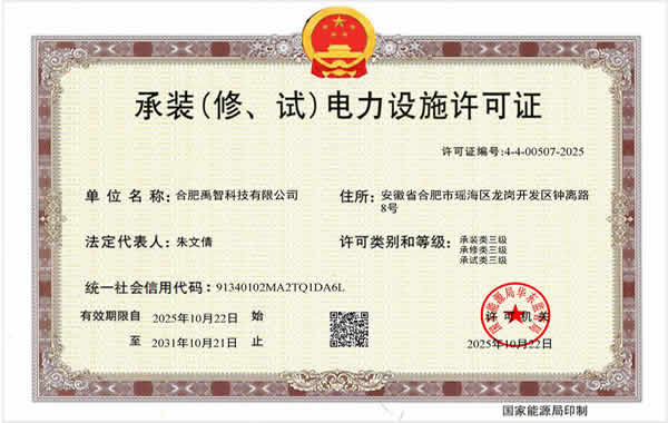 合肥禹智科技有限公司承裝(修、試)資質(zhì)證書